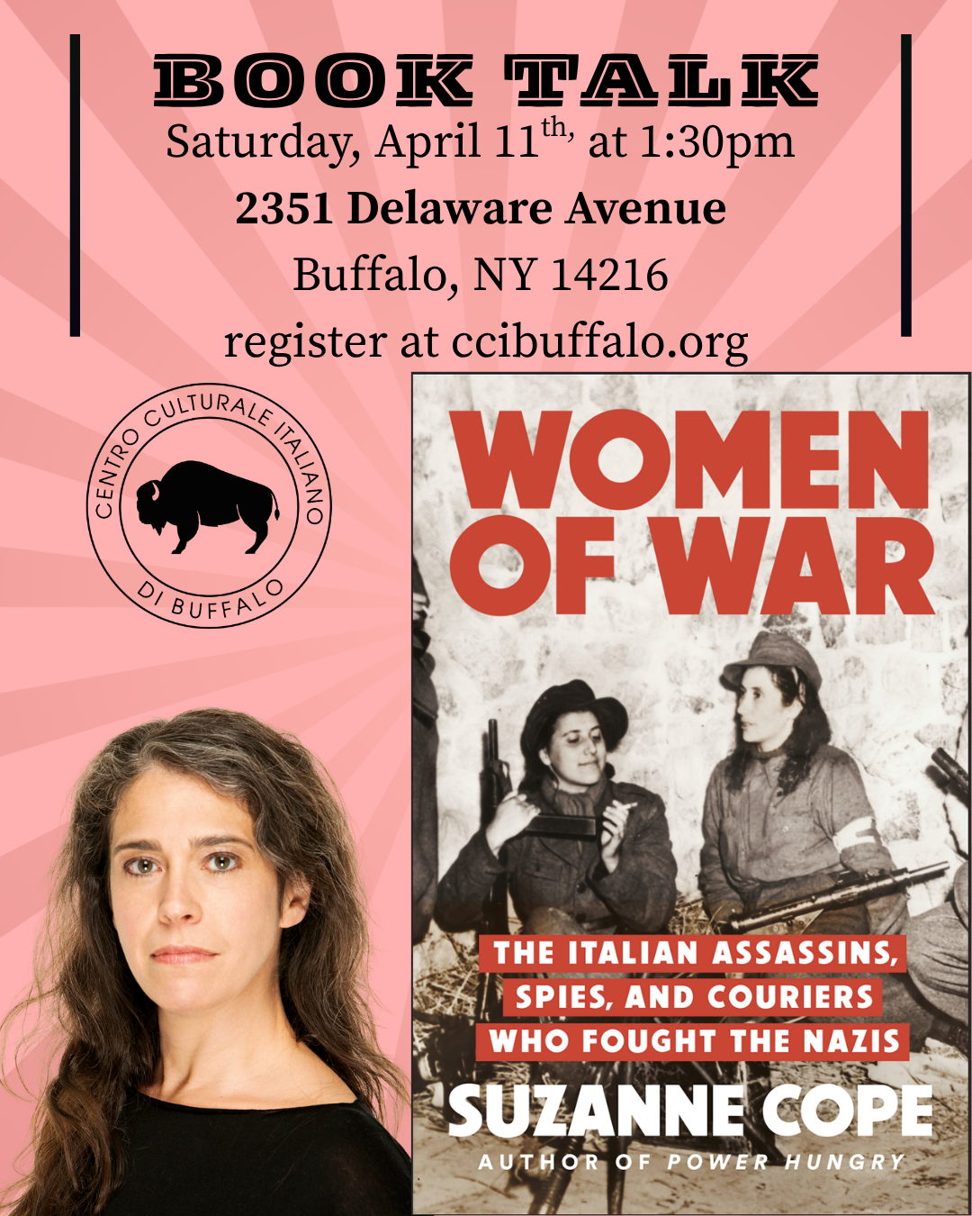 Home Events - Centro Culturale Italiano di Buffalo Book Lecture | Women of War with Author Suzanne Cope Book Lecture | Women of War with Author Suzanne Cope Register Now Date Apr 11 2026 Time 1:30 pm - 2:30 pm