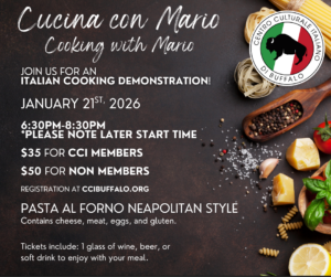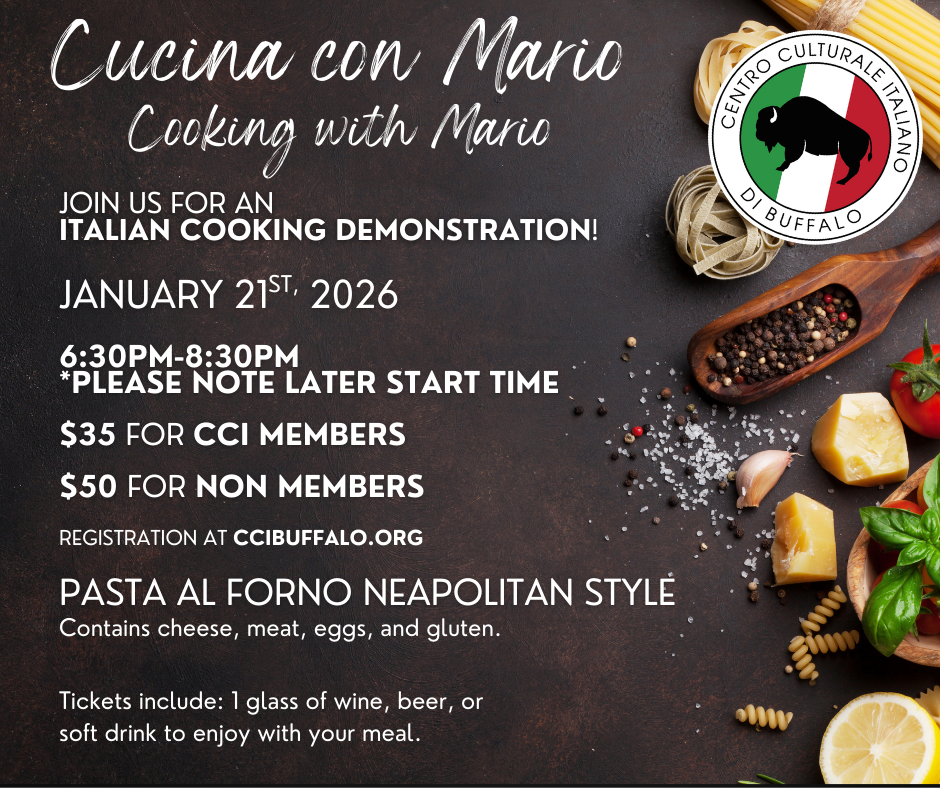 Home Events - Centro Culturale Italiano di Buffalo Cucina con Mario Cucina con Mario Register Now Date Jan 21 2026 Time 6:30 pm - 8:30 pm