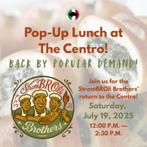 Home Events - Centro Culturale Italiano di Buffalo StromBROli Pop-UP StromBROli Pop-UP Date Jul 19 2025 Expired! Time 12:00 pm - 2:30 pm